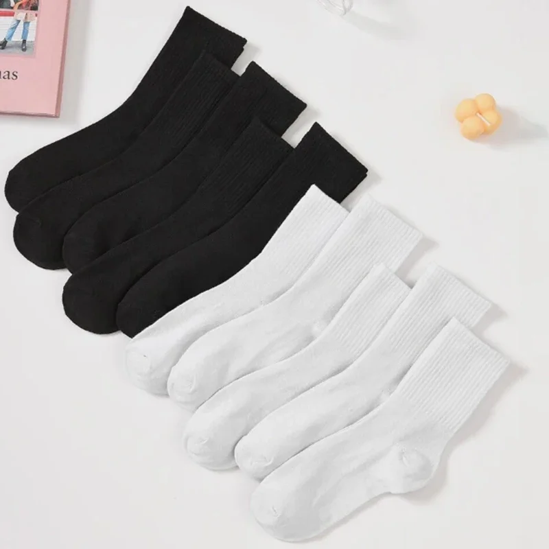 10/20 Pairs Women Solid Color Crew Socks Classic Versatile Comfortable Breathable Sweat Absorbing Running Sports Leisure Socks