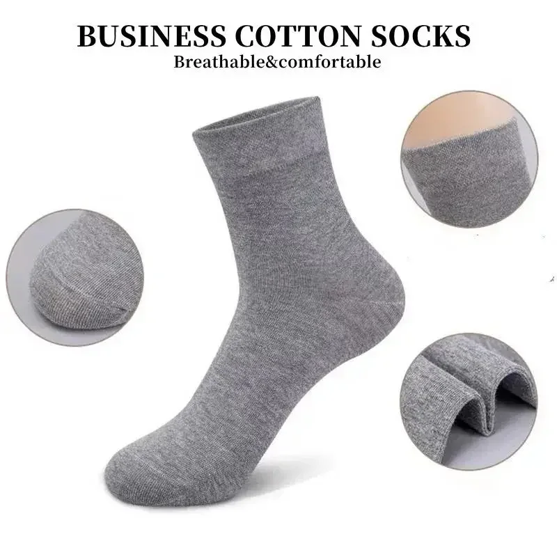 20PCS=10Pairs/Lot Men's Pure Cotton Socks Plus Size Solid Color Casual Office Business Long Socks Breathable Soft Men's Socks Plus Size EU39-48