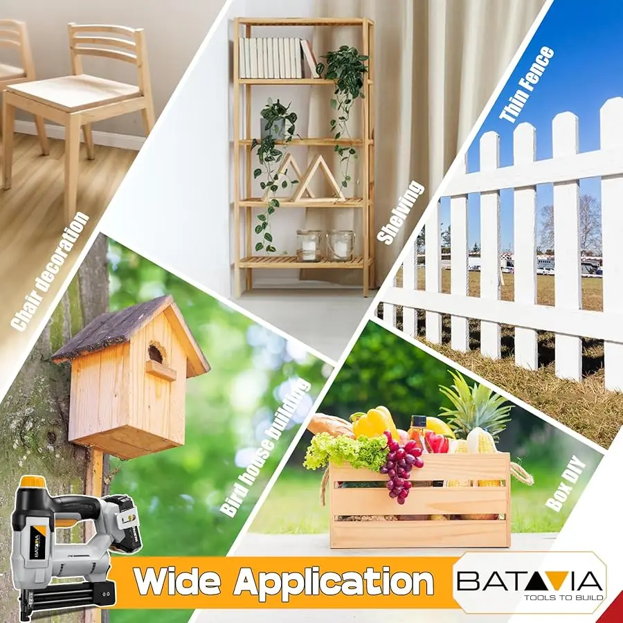 【2-in-1 Cordless Nail & Staple Gun】 Versatile 18-gau brad nailer (5/8" to 1-1/4") + 1/4" crown stapler (from 5/8" to 1") in one battery-powered tool. Perfect for woodworking, thin-trim, upholstery, or DIY pet houses—no cords, just mobility. Includes 800pcs nails + 200pcs staples for immediate use. Tackle projects anywhere, from flooring to fence mending, with adjustable lengths for precise results