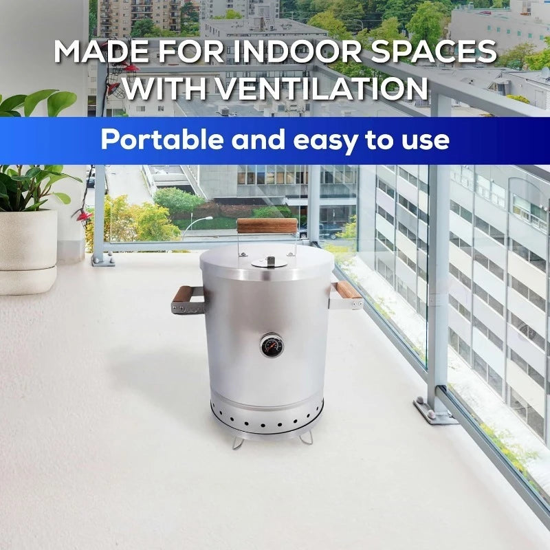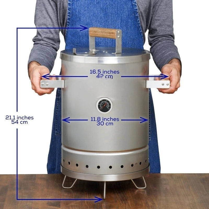 (6-pound) Stainless Steel (Small) Charcoal Barrel Smoker with Thermometer & Airlock system - 16.5"x 21.18" x ⌀11.81"