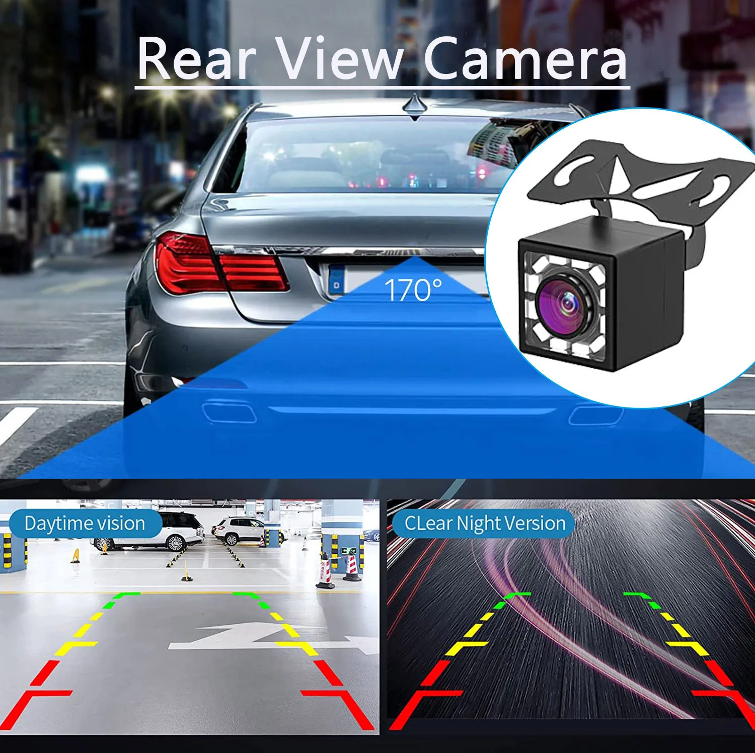 ♥ The bluetooth car stereo is equipped with HD and 170° viewing angle waterproof backup cam with 12 LED lights, night vision effect is better.