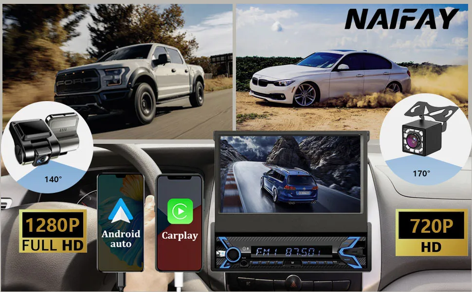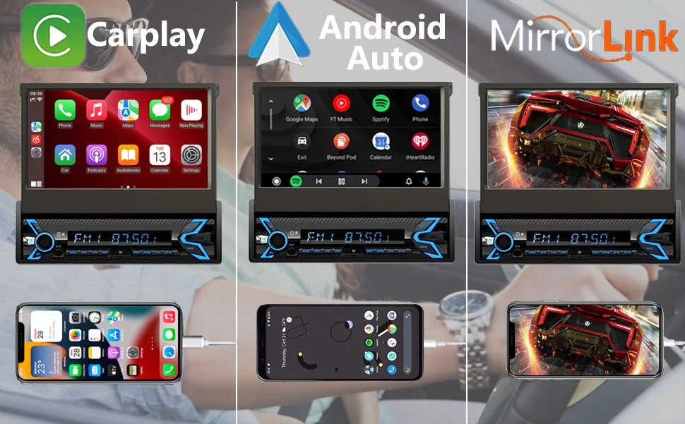 ♥ Online GPS/Navigation:Has specific hardware solution to integrate IOS CarPlay or Android Auto into its system so that you can run iOS Maps or Google Maps/Waze on the 7 in HD flip up touchscreen, as long as they are available on your phone.