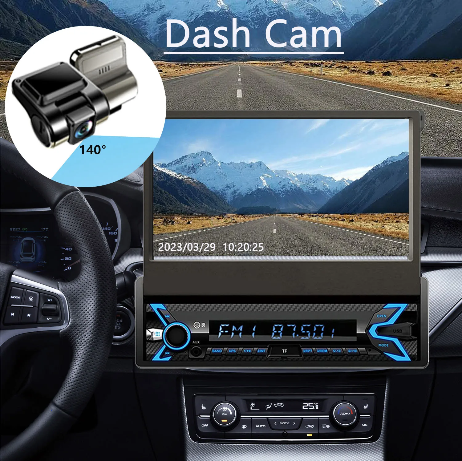 7 Inch Flip Out Car Stereo 1 Din HD Touchscreen Car Video Player Support CarPlay Android Auto with Dash Cam & Backup Camera BT