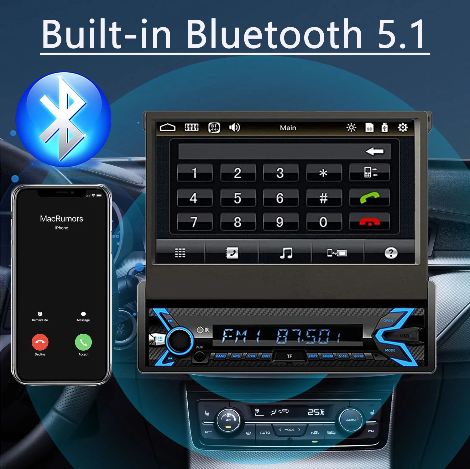 ♥ Car Stereo with Bluetooth:The car audio receiver uses the latest version 5.1, fast transmission speed, higher stability, answering/making calls, hands-free without interference.