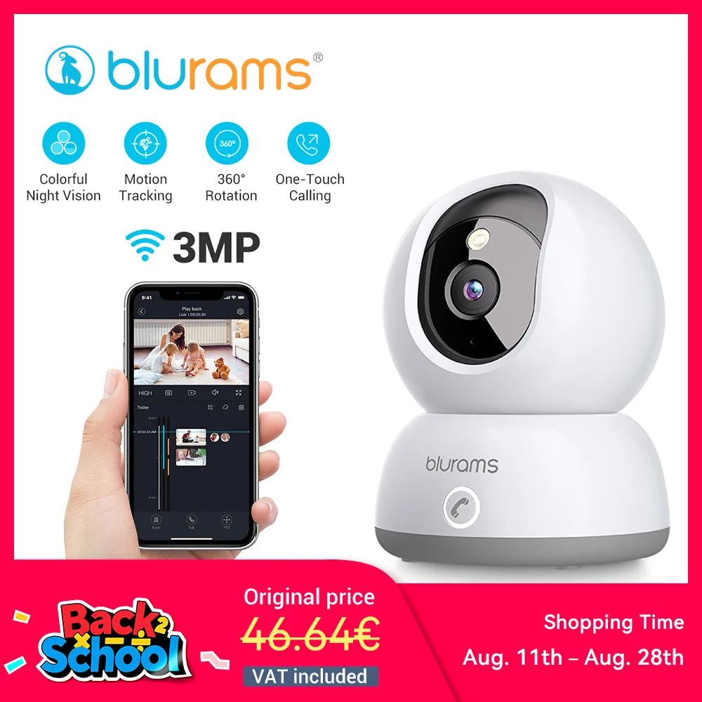 Blurams 2K Indoor Camera for Home Security, 360° Pet Dog Camera with Phone App, 2-Way Talk, One-Touch Call, Night Vision, 2.4GHz
