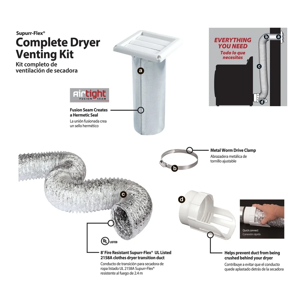 Complete 8' Dryer Vent Kit designed for efficient indoor venting