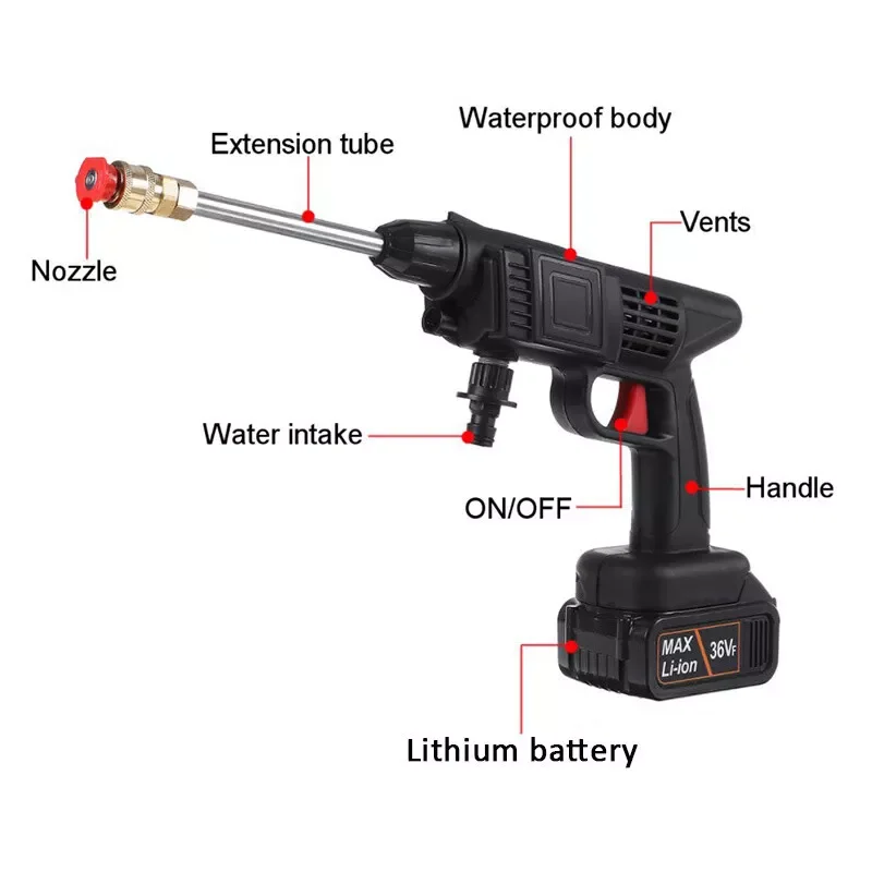 Cordless Electric High Pressure Water Spray Gun Portable Car Washer Self Priming Auto Home Garden Cleaning Tool Accessories