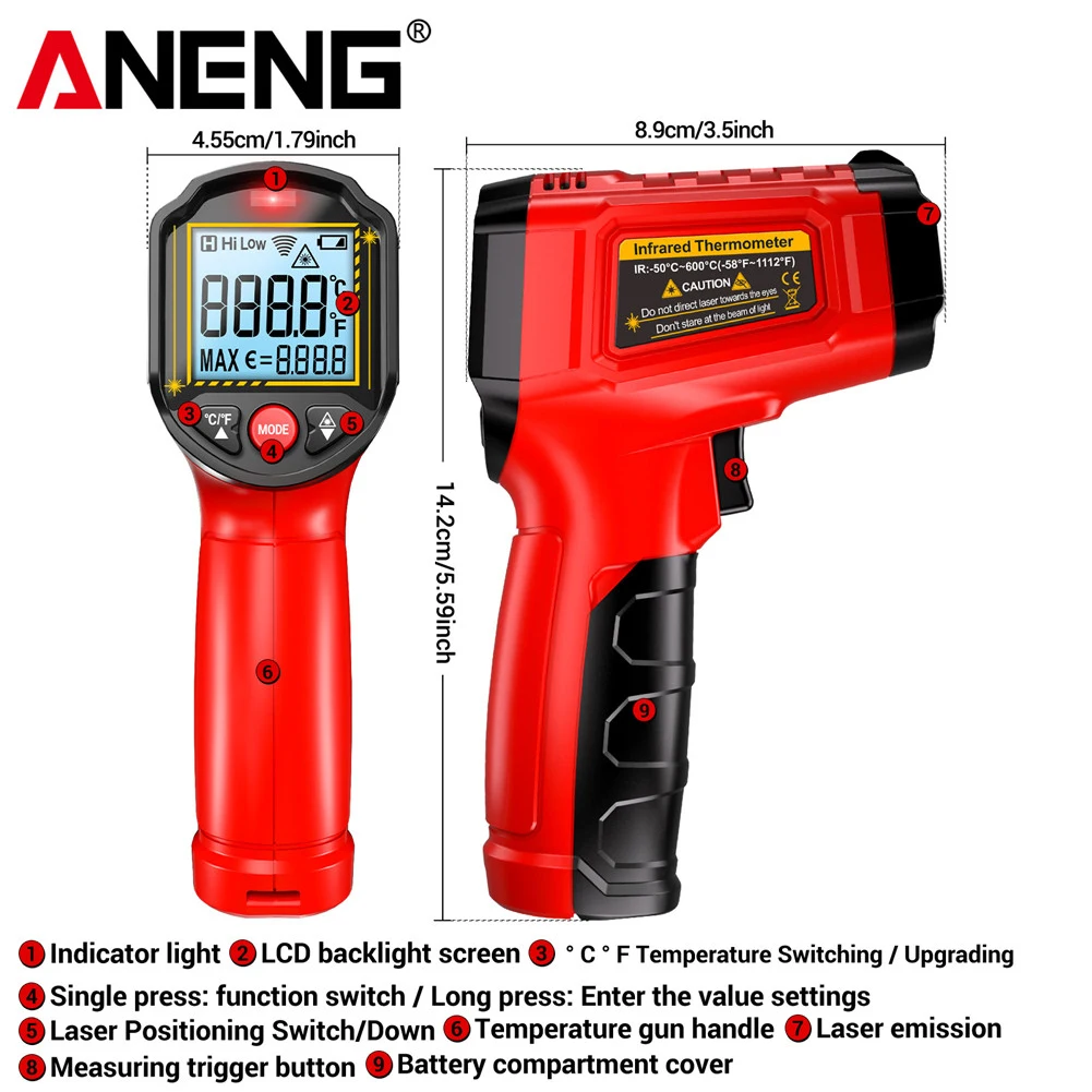 Digital Infrared Thermometer -50~600℃ Non-Contact IR Thermometer Gun Backlight LCD Pyrometer Tester Meter for Cooking Grilling Vehicle Repair