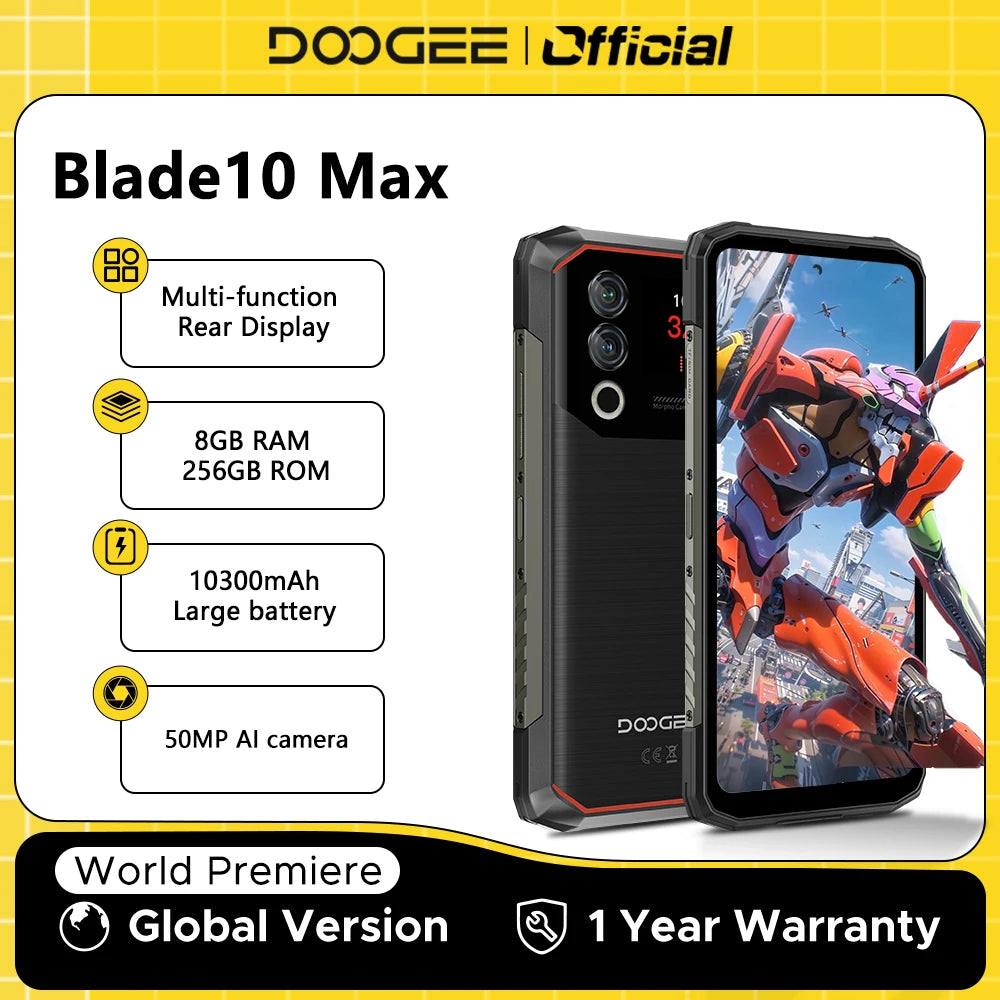 DOOGEE Blade10 Max Rugged Phone 6.56" 90Hz IPS Display 8GB 256GB 1.54" Rear Display 50MP AI Main Camera 10300mAh 18W Charge