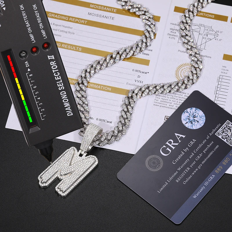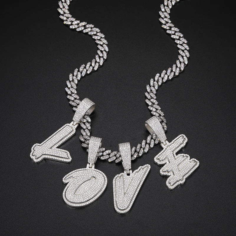 Fine New Unisex 925 Silver Pendant Letters Classic Punk Hiphop/Rock Letters Moissanite Pendant For Men Hip Hop Jewelry