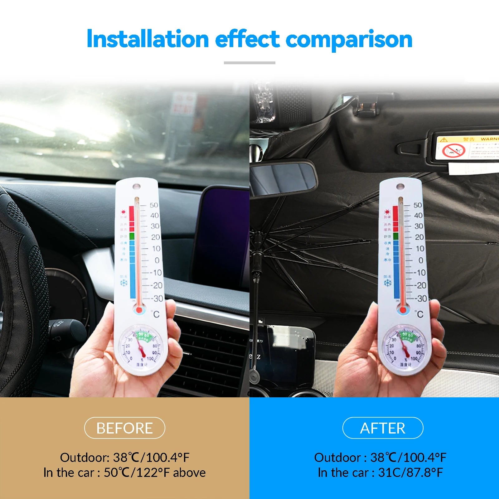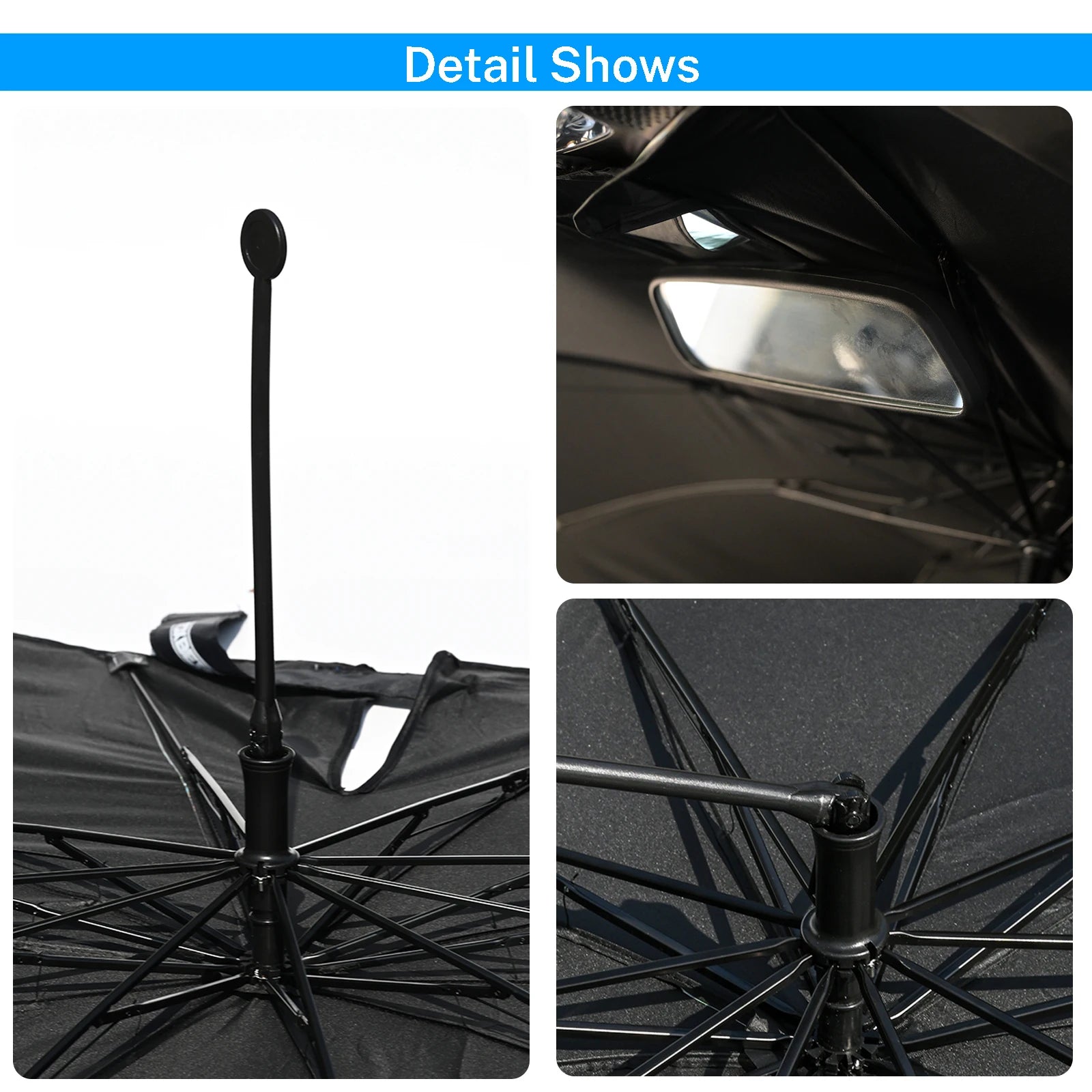 1. High-Quality Material & Durable Design - These umbrellas are made of silver coated cloth and black steel bone. These types of materials ensure the reliability and durability of these car sunshade umbrellas. The design on each type of sun umbrella - the silver coating and black back can efficiently protect the interior of your car from UV rays, sun glare, to lower the temperature in the car, which makes you comfortable.