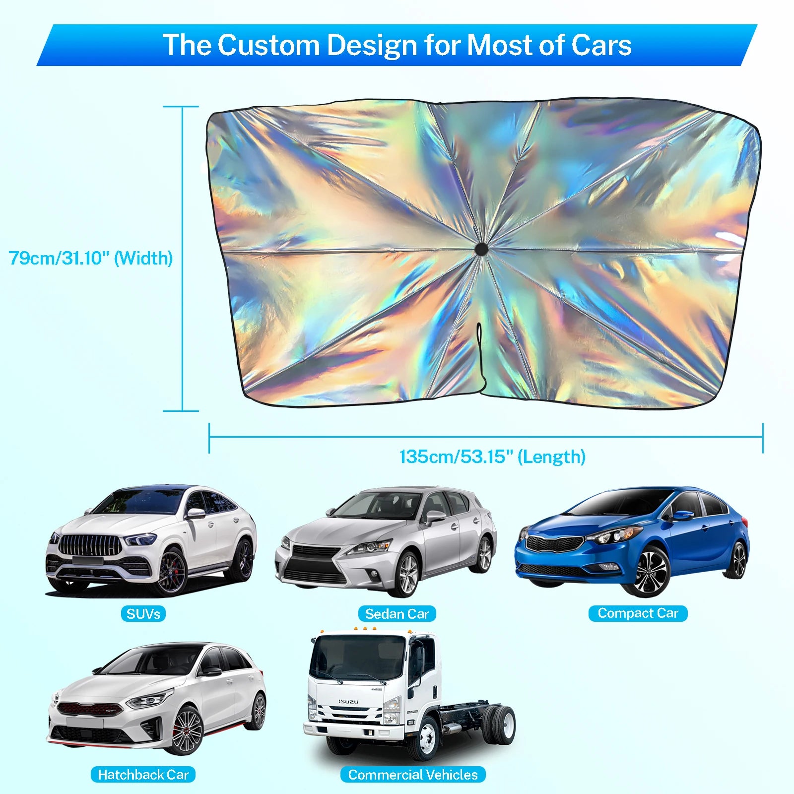 Foldable Car Umbrella Windshield Sun Shade Cover Iridescent UV Block Front Window Sunshade Heat Protection Universal Accessories