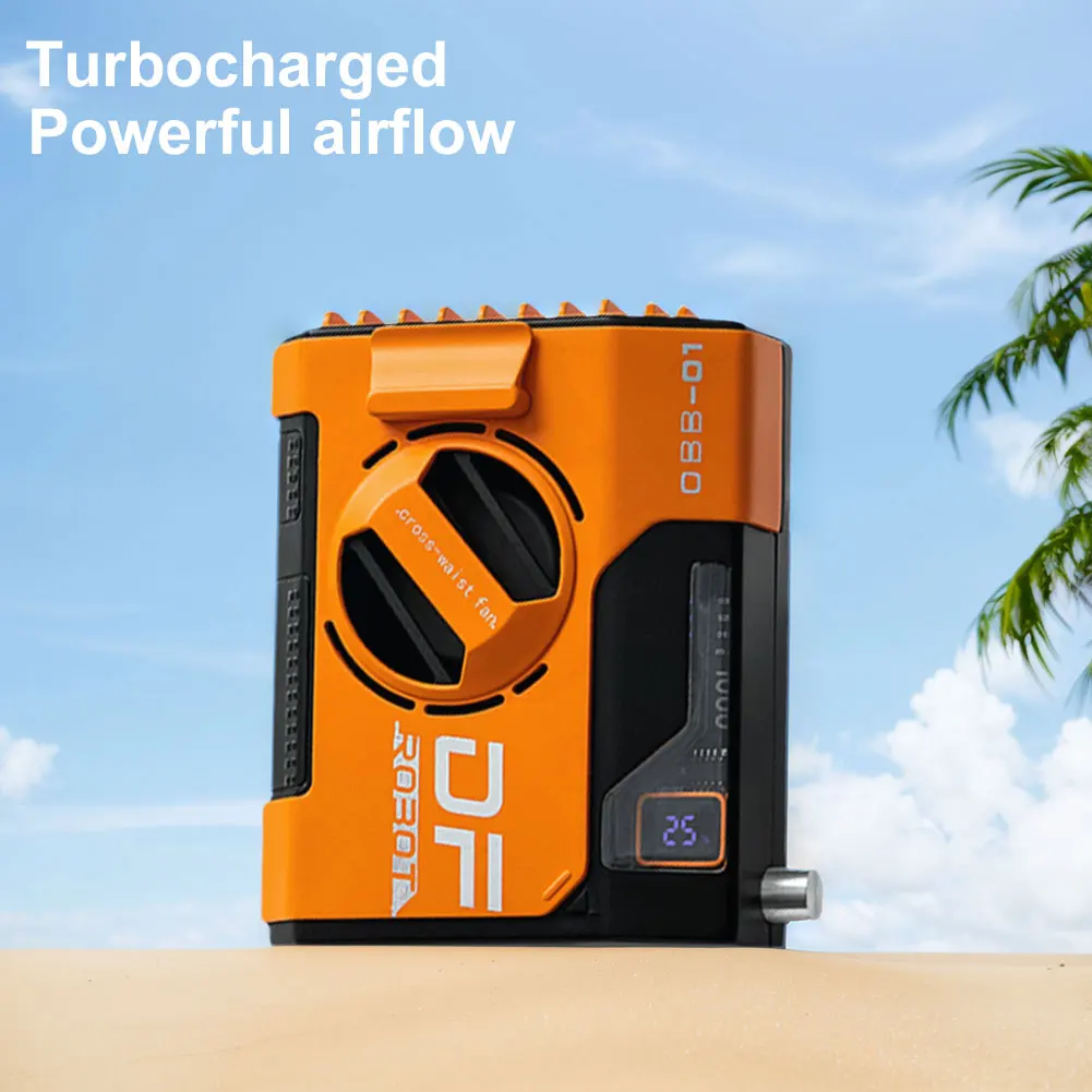 Portable Waist Fan Rechargeable 5 Speeds Outdoor Camping Fan LED Digital Display Personal Body Fan Strong Airflow As Power Bank for Outdoor Jobsite Climbing Hiking