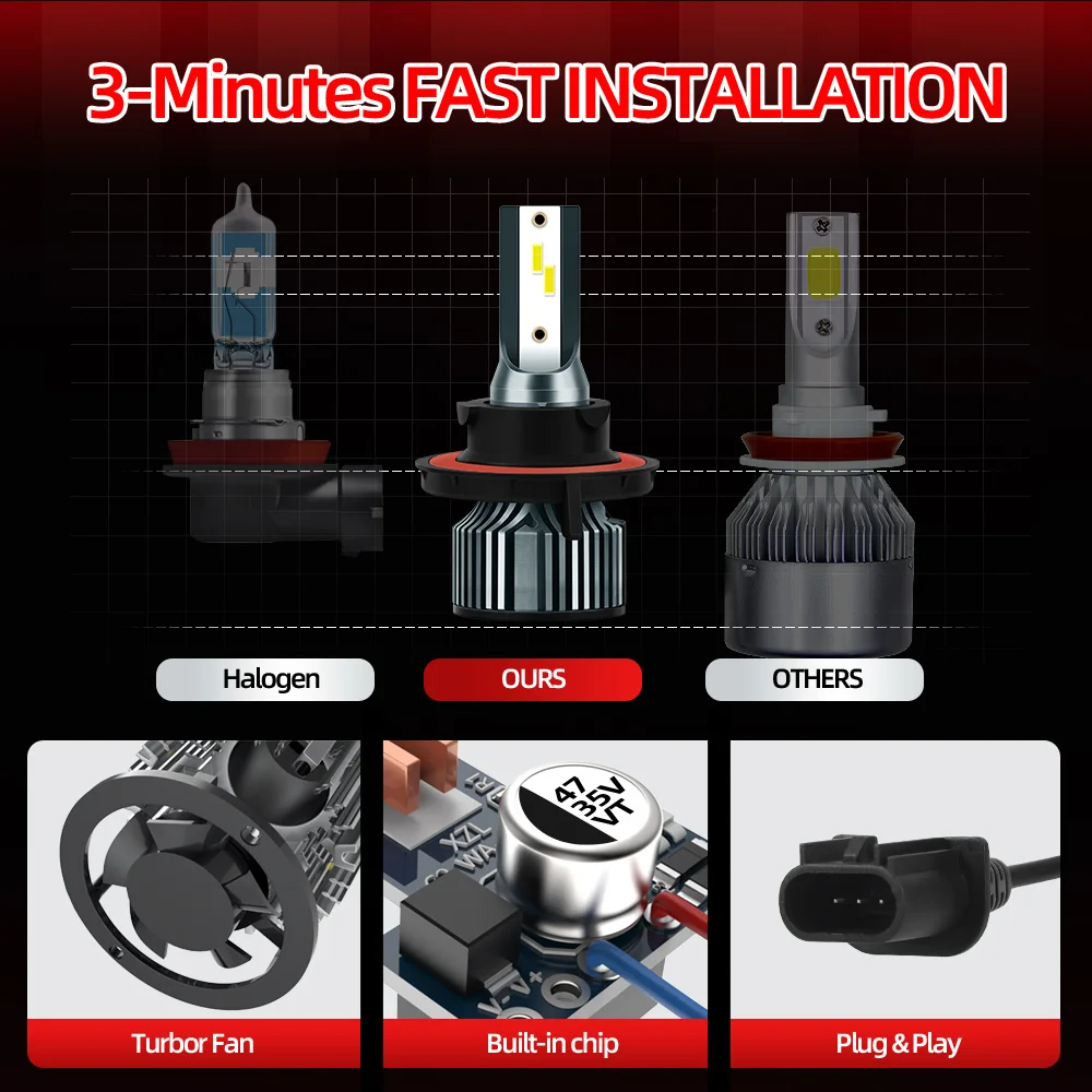 Easy to install, plug and play in 10 minutes, almost 1:1 mini design same as halogen, perfectly fit into your housing and factory sockets without any modification.