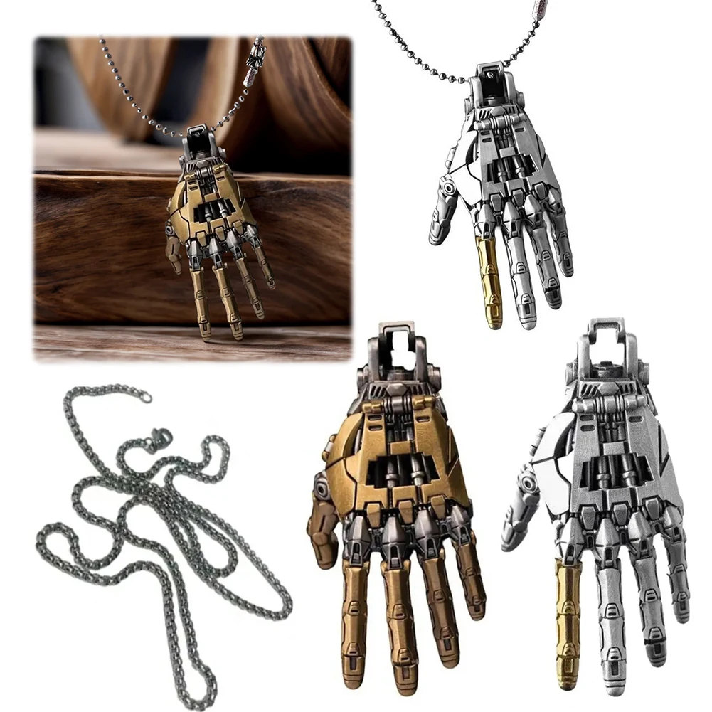 Mechanical Bionic Hand Pendant with Chain Robot Hand Charm Jewelry Movable Finger Joints Robot Hand Necklace Jewelry for Men Women