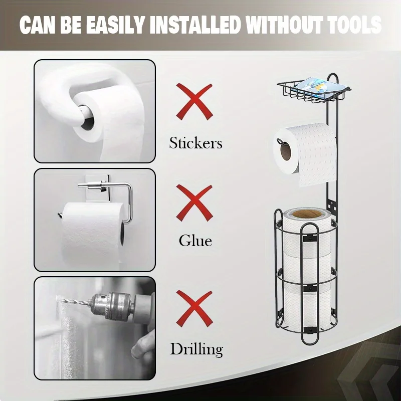 Round toilet paper holder with shelf, bathroom freestanding toilet paper holder