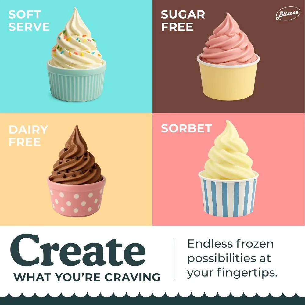 SOFT SERVE AT HOME! No need to pre-freeze, the Blizzee self-cooling electric ice cream maker allows you to quickly and easily create gelato, ice cream, and sorbet using ingredients you trust from the comfort of your home