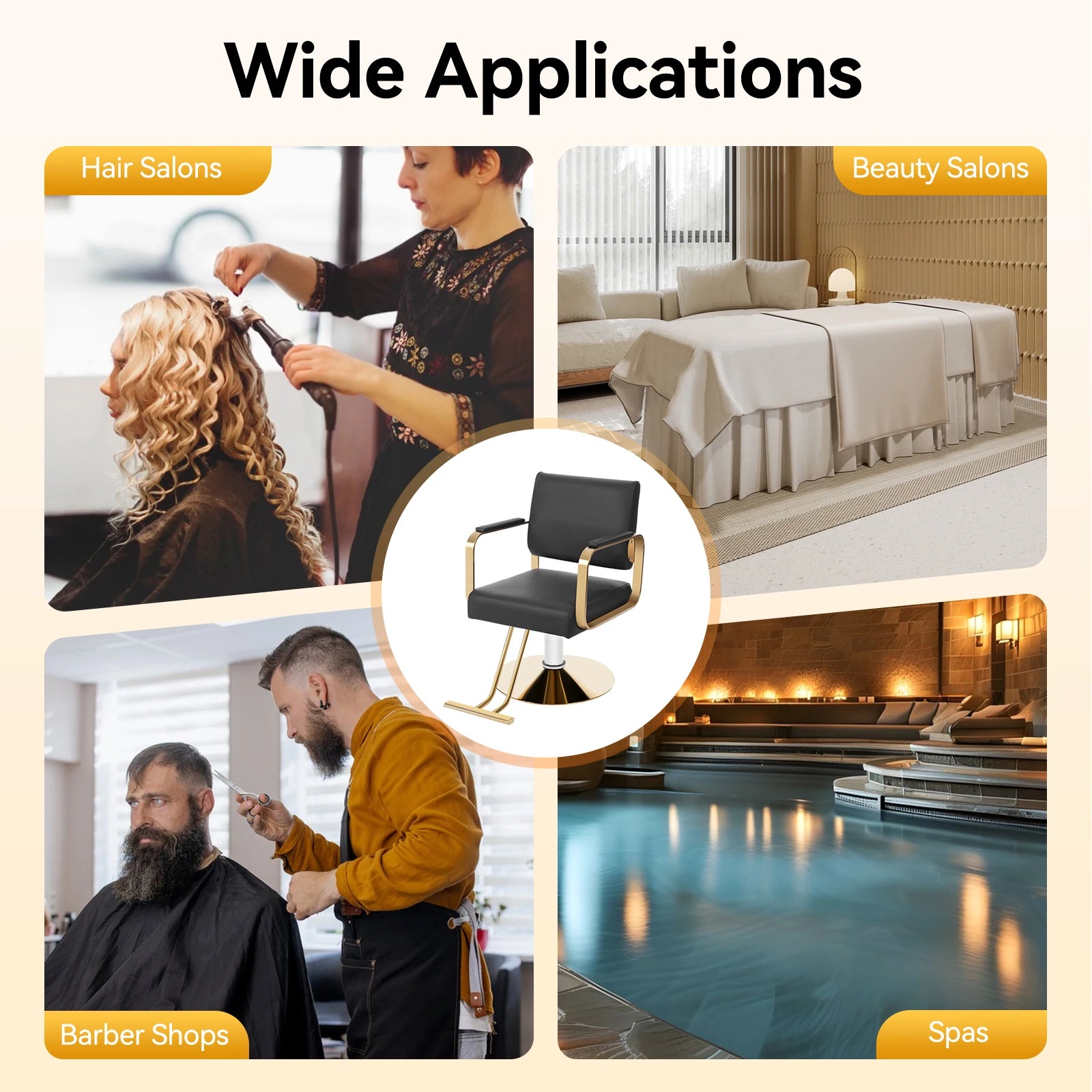 Our salon chair combines functionality and aesthetics. High-quality materials and exquisite craftsmanship make it sturdy and durable. The PU cushion with built-in rebound sponge and ergonomic backrest provide you with a comfortable sitting experience. Its adjustable height and 360° rotatable design greatly offer more flexibility. In short, with its outstanding performance, user-friendly design, and generous appearance, it is an ideal choice to enhance the professional image and customer satisfaction of your salons.