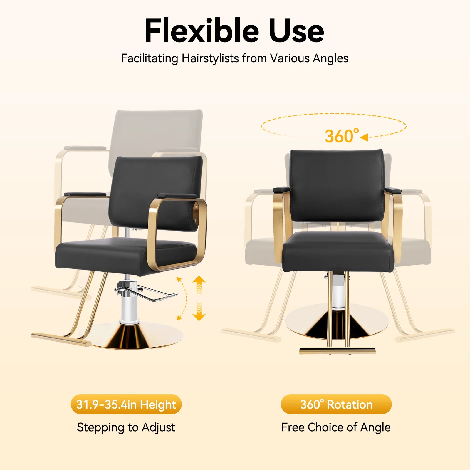Flexible Use: You can adjust its height up and down (31.9-35.4 inches) by stepping on the pump rod with your foot, making it suitable for different customers. It can rotate 360°, greatly facilitating hairstylists to trim, dye, or blow-style hair from various angles.