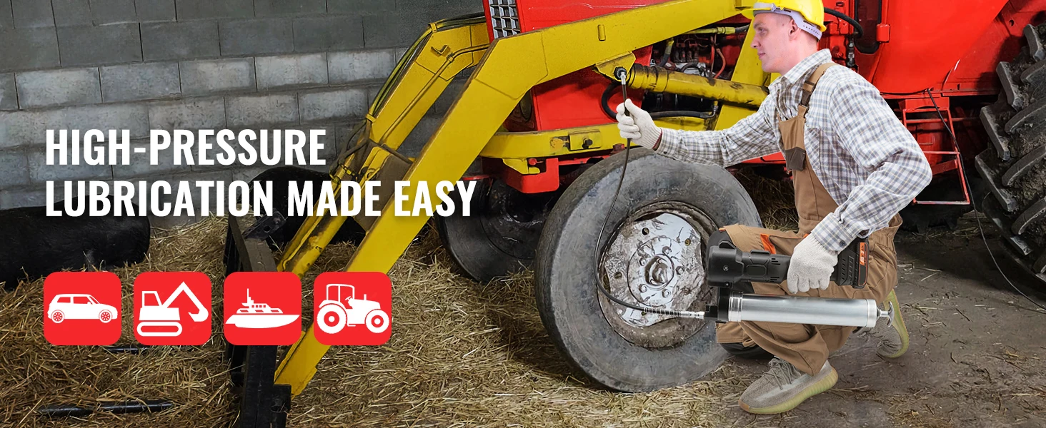 Ready for Anything: This cordless grease gun kit isn't picky. It's not just for machinery – it's perfect for cars, boats, farm equipment, and construction machinery. From factories to fields, docks to workshops, it's ready for action wherever you need it.