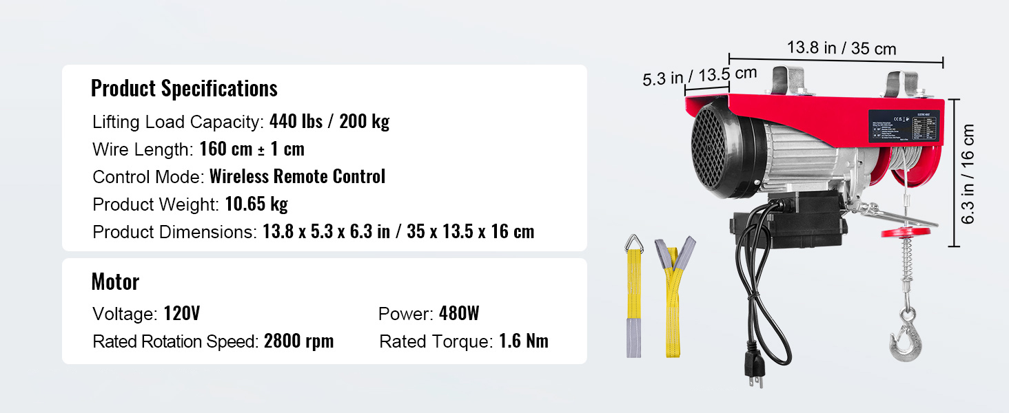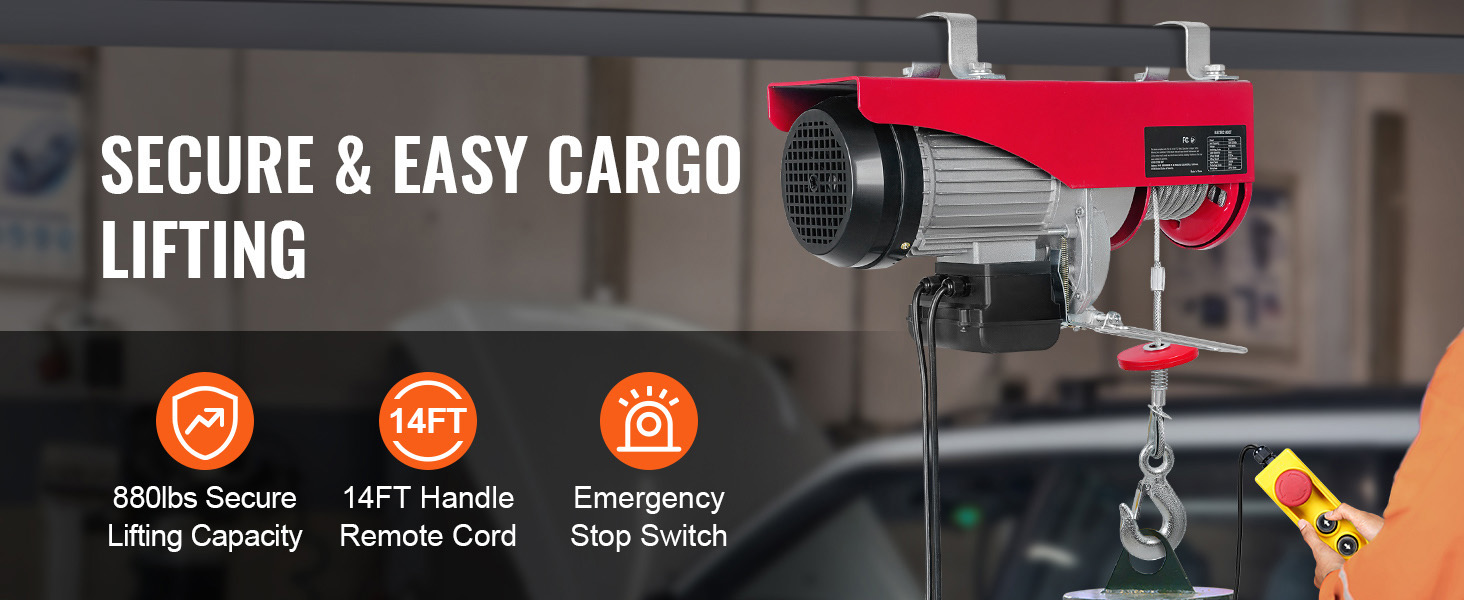 SucceBuy 200-800kg Electric Hoist with Wired/Wireless Remote Control Lifting Crane Cable Hoist Winch for Boat Garage Elevator