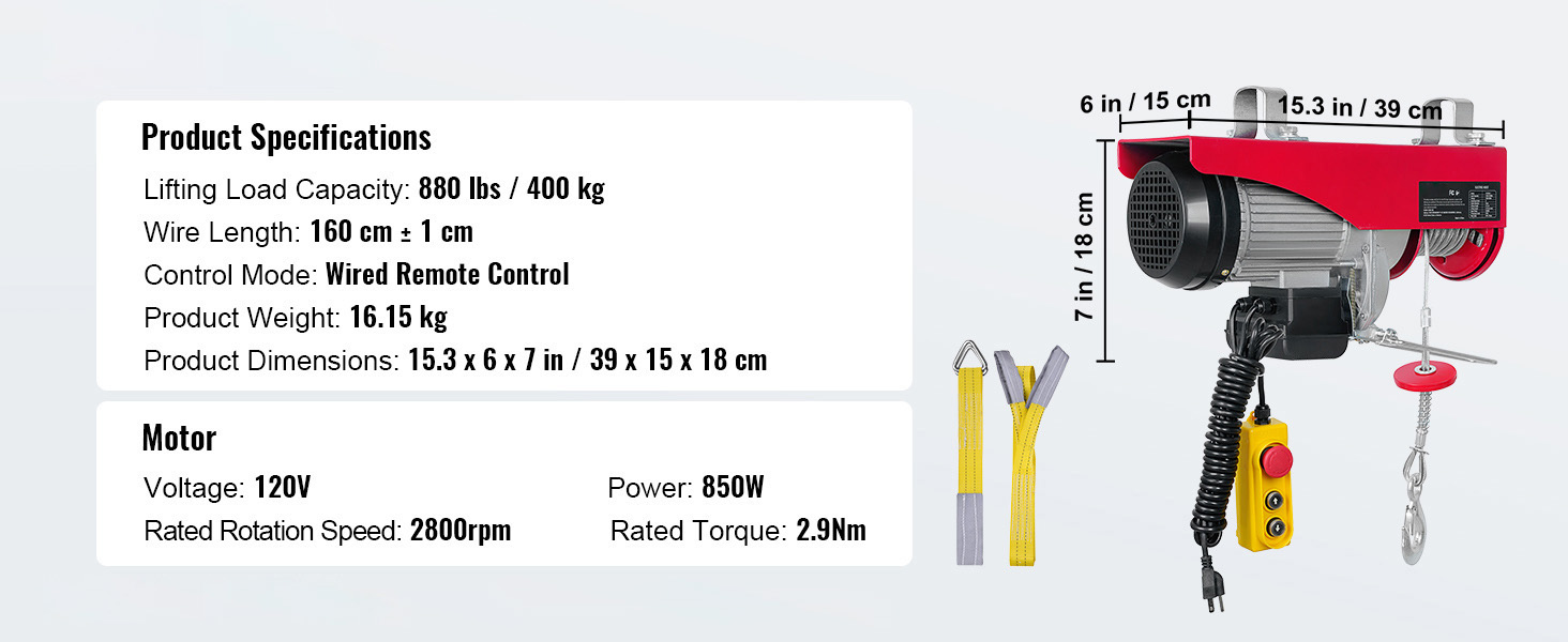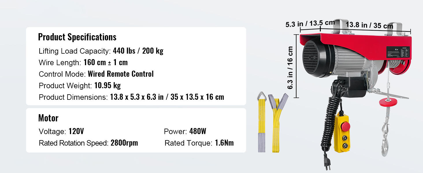 880 lbs Load Capacity: This lifting machine can effortlessly handle small engines, transmissions, and large tools; It has a capacity of 440 lbs (single line) and 880 lbs (double lines), making it suitable for various heavy items