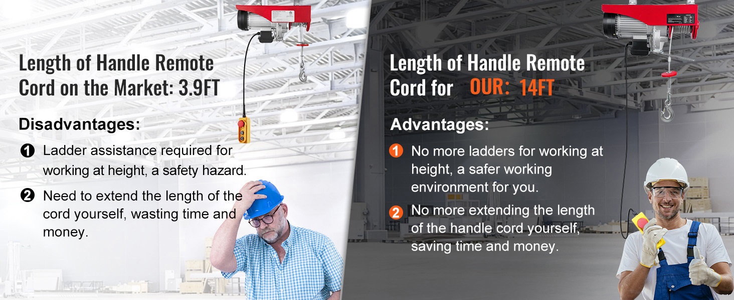 Remote Control: The wired remote control is via a controller switch on the approximately 14ft extended cable, enabling safe operation from a distance
