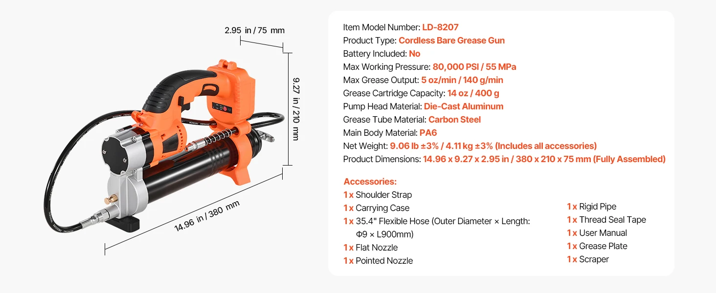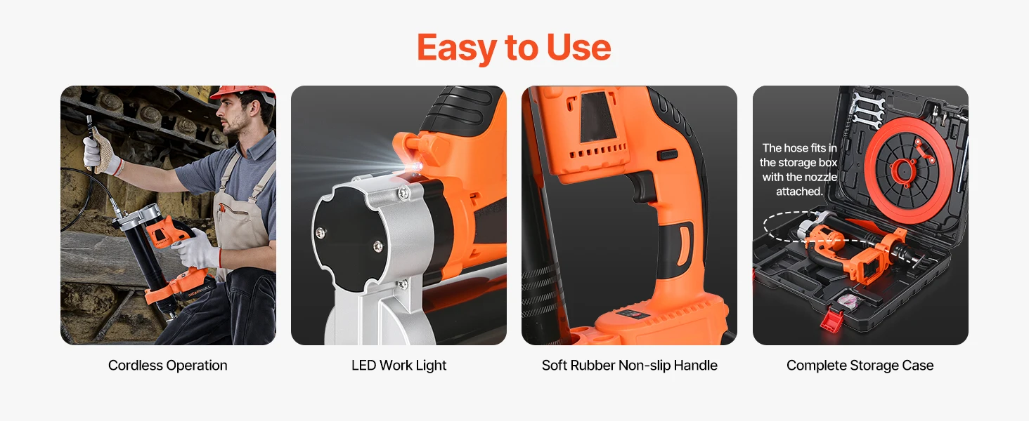 Fit for Industrial Use: From factory machines to farm tools, this electric grease gun keeps your equipment running smoothly. Reduce wear, avoid breakdowns, and boost efficiency—because your machines deserve the best care