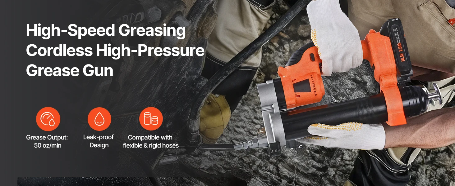 High-speed Greasing: No more manual pumping! This automatic grease gun delivers 50oz per minute at 8000 PSI, making lubrication fast and easy. The variable-speed trigger gives precise control, so you apply just the right amount—no waste, no mess