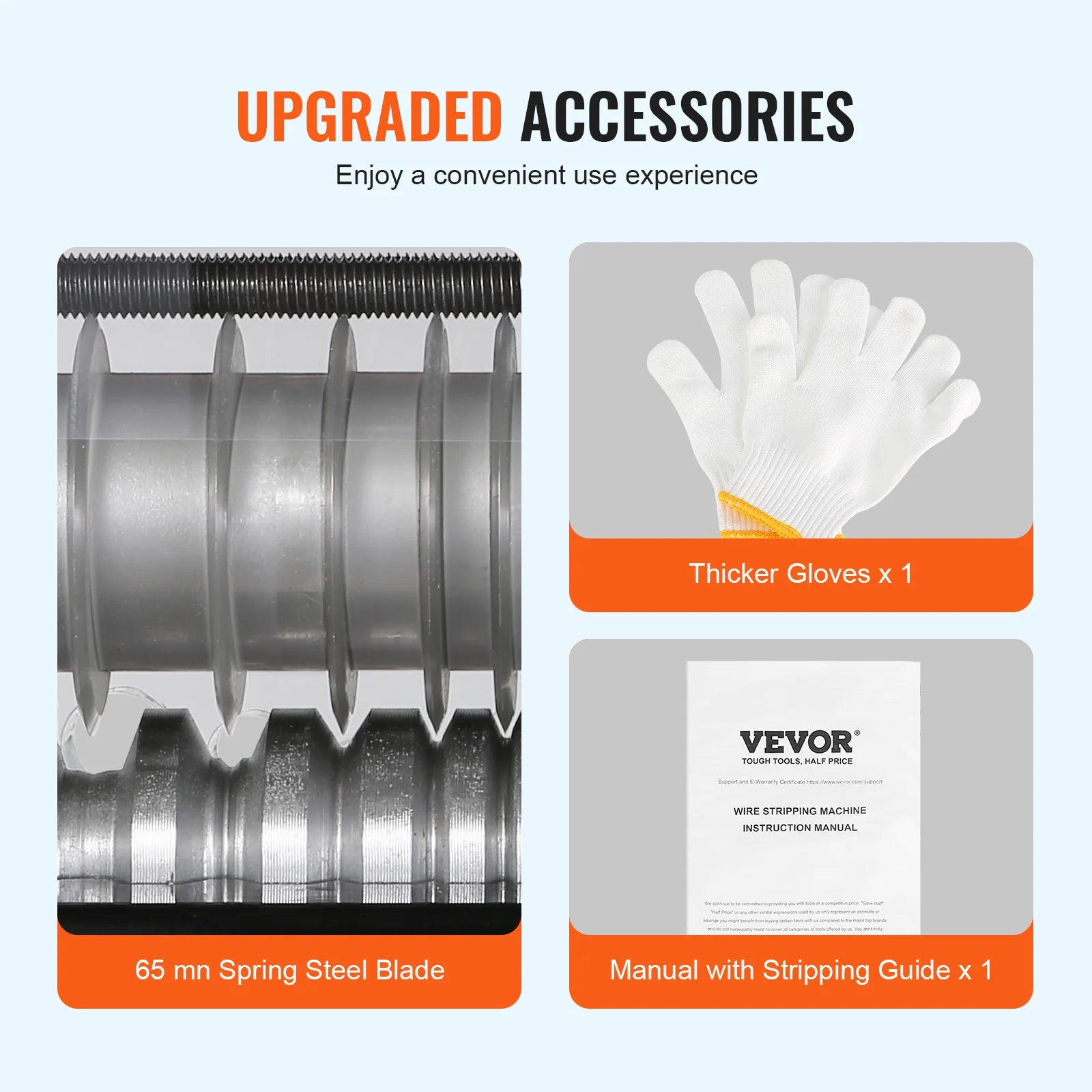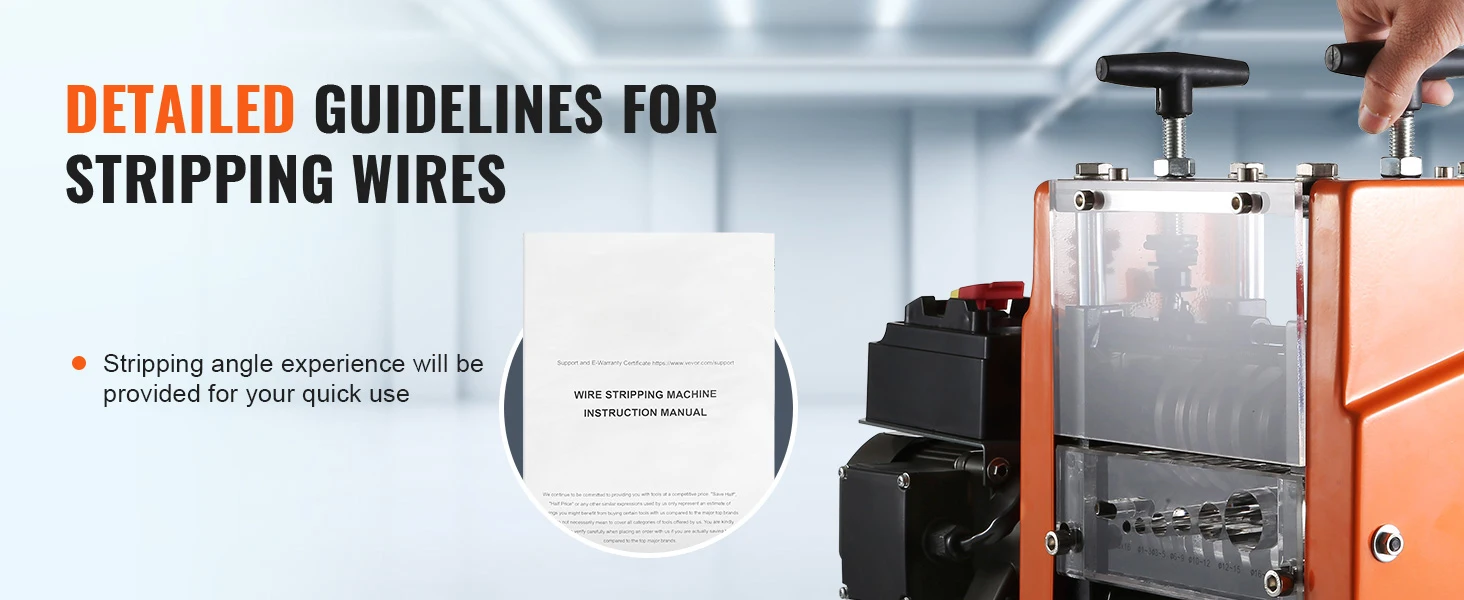 The included protective gloves and detailed instruction manual with expert stripping angle tips enhance your experience, making it easy for both novices and experts to achieve top-notch results.Efficient Stripping Performance:The SucceBuy wire stripper features a 60W gear motor that delivers the power of a 180W motor in a compact design. Its high-efficiency gearbox ensures quick stripping, while the hands-free operation enhances safety and ease of use for cable manufacturers, recyclers, and copper processors.