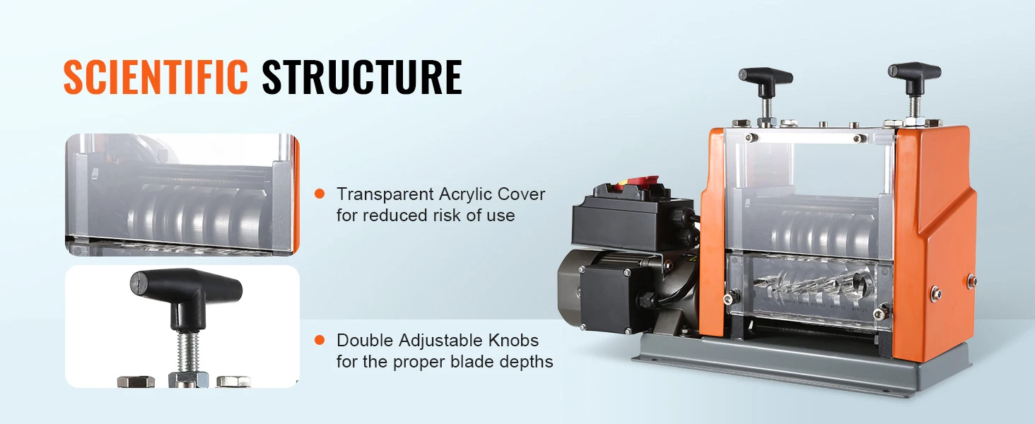 Clear Visibility and Durability:Built with a sturdy cast iron frame and a transparent acrylic panel, this wire stripper offers complete visibility of the stripping process. Its robust construction ensures long-term reliability and consistent performance.