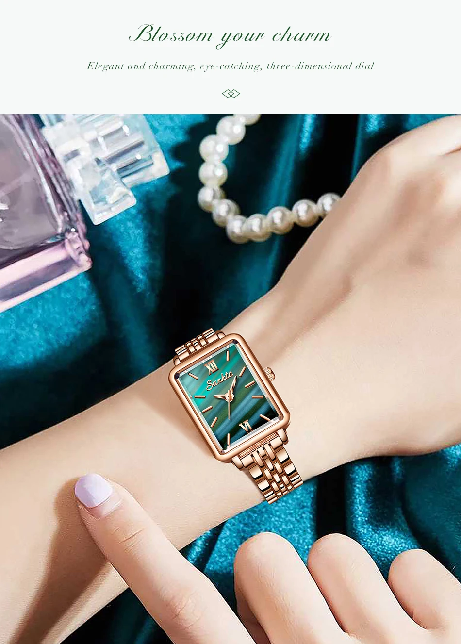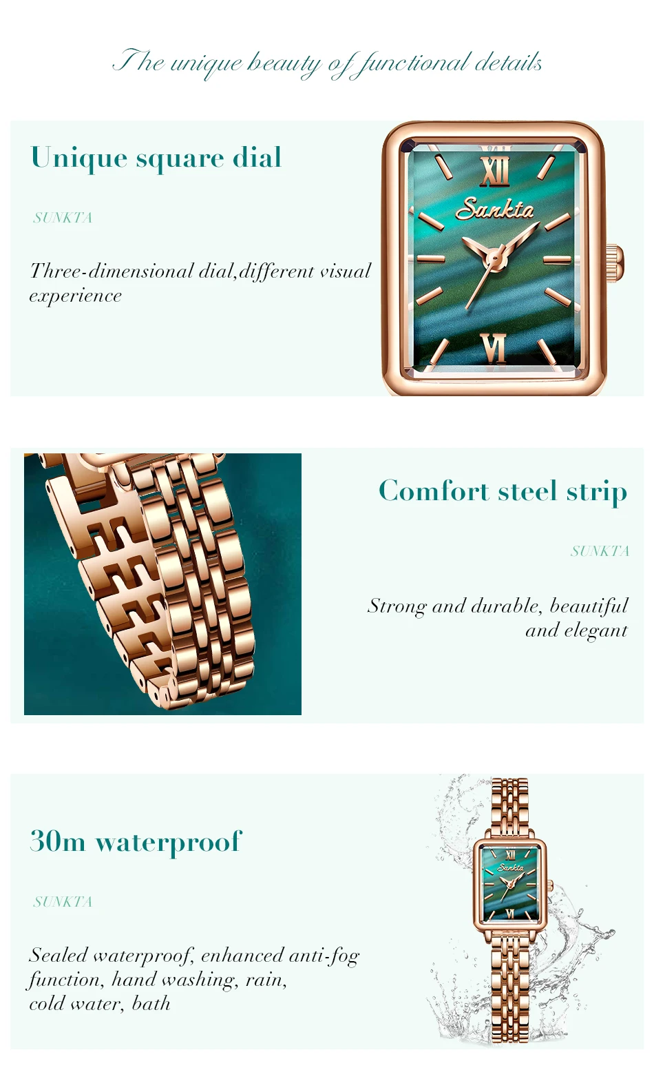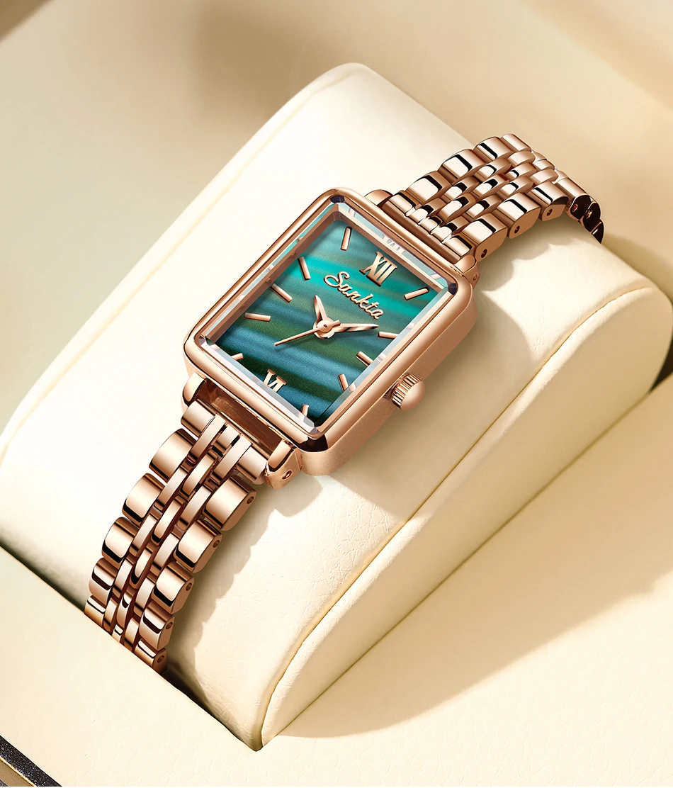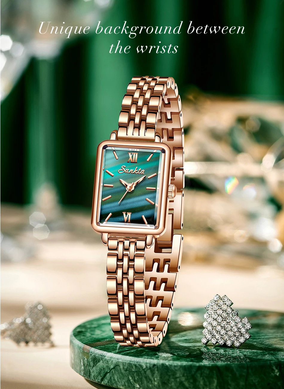 SUNKTA Luxury Hight Quality Quartz Watch Fashion Charming Rhinestones Stainless Steel Band Women's Wristwatches+BOX