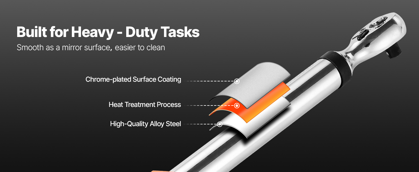 Durable Construction: Our electronic torque wrench is made from high-quality alloy steel with a six-stage heat treatment process. The chrome-plated surface is rustproof, providing a smoother finish that's easy to clean