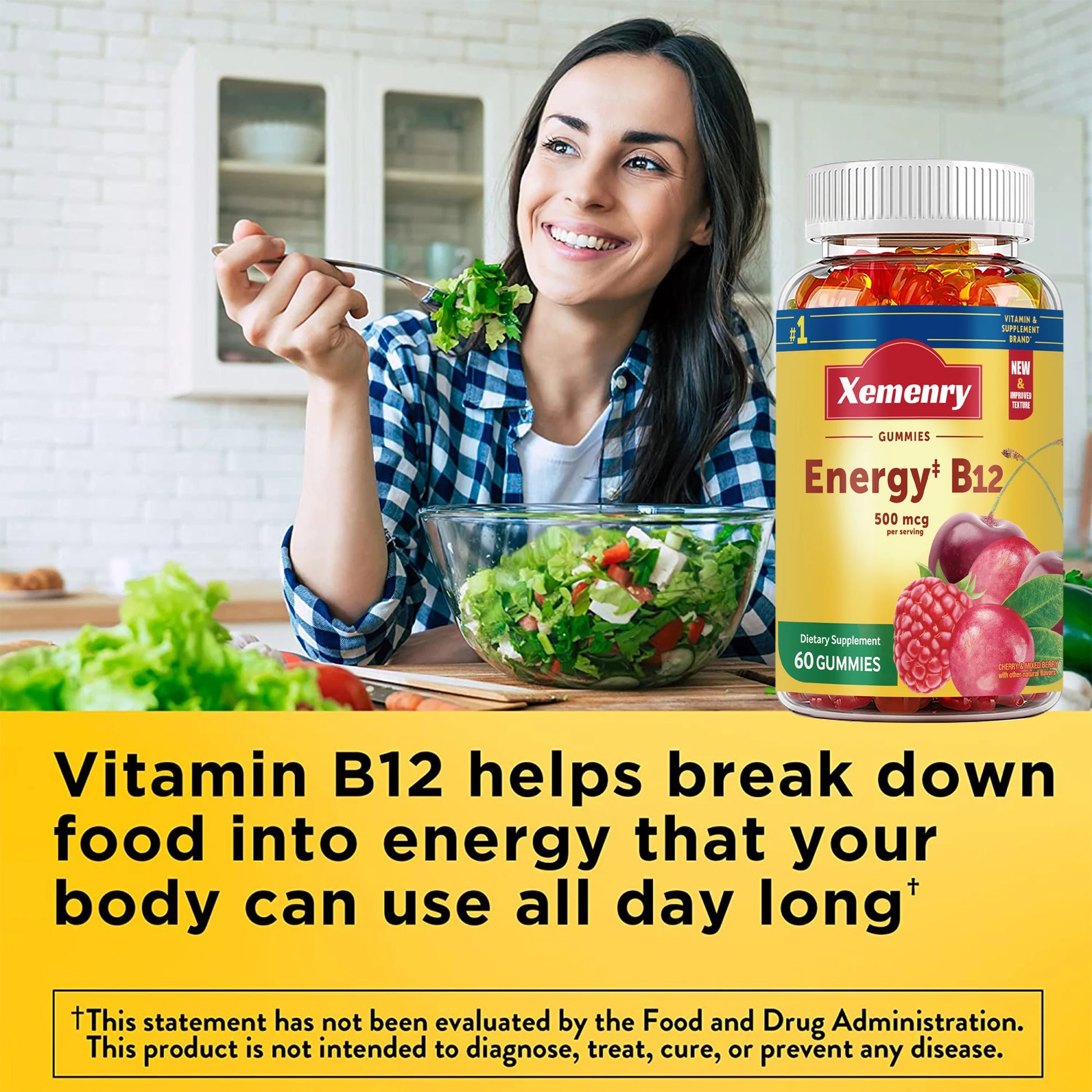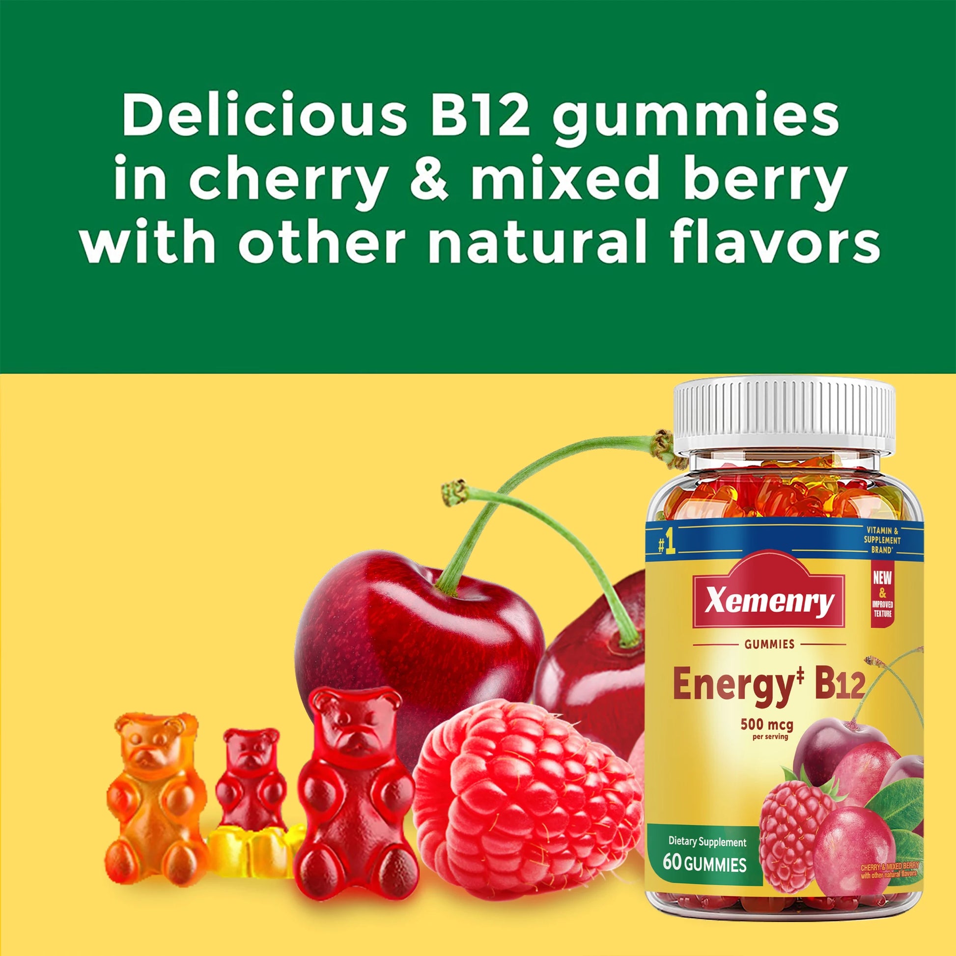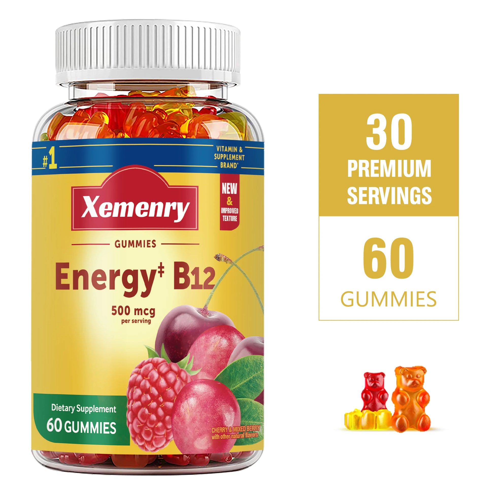 Vitamin B12 Gummies - Immune and Energy Support, Metabolism Boost, Bone Health - 60 Gummies